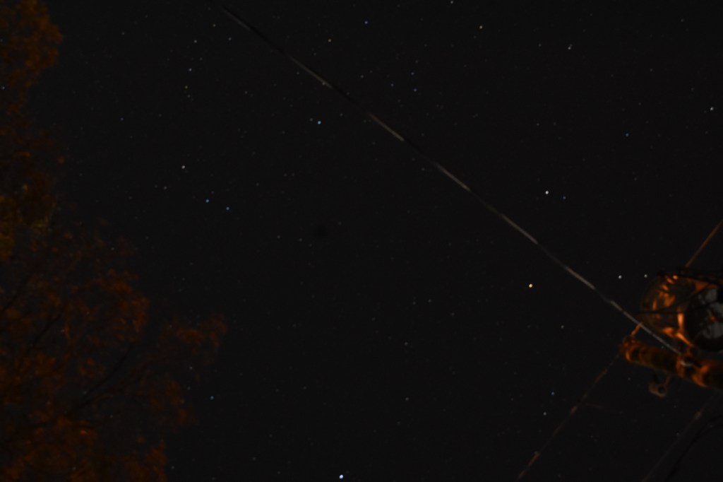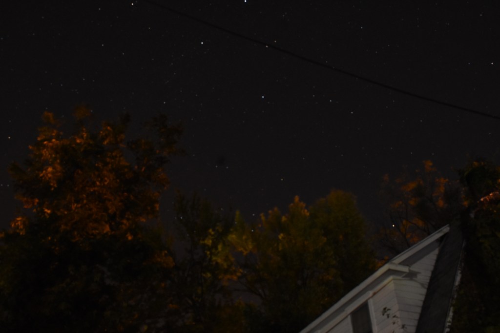 The photos here (below) were the result of me setting up outside on a chilly October night trying to get a lucky shot of a shooting star. It was a prime opportunity, for sure: debris from Halley’s Comet has graced our night skies yearly in the form of meteorites, and the Orionids meteor shower can produce some surprisingly bright objects for viewing. As it is, I only saw one shooting star and did not even capture it on film. Once the night got cold enough, I folded up my tripod and headed back indoors.