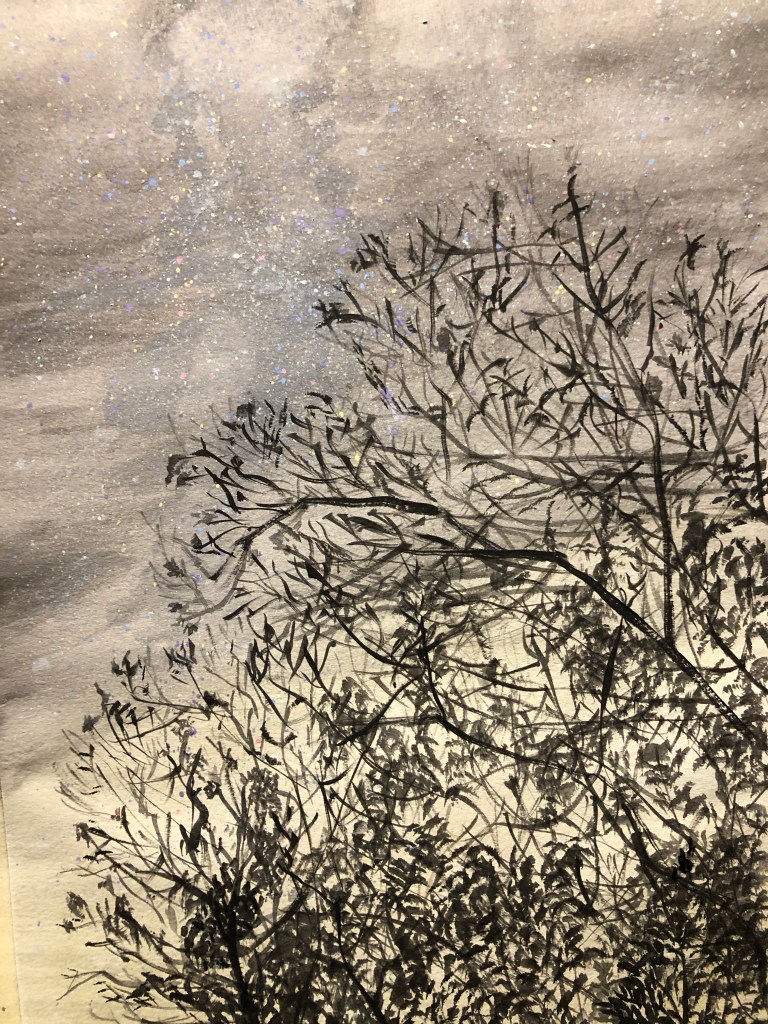 Cassiopeia (in the center) over a treeA Portion of Pisces peeking through some trees; an abandoned house in the foregroundStarfield with powerlines, telephone pole and transformer in the foreground. And a tree. Considerable light pollution during the pic.