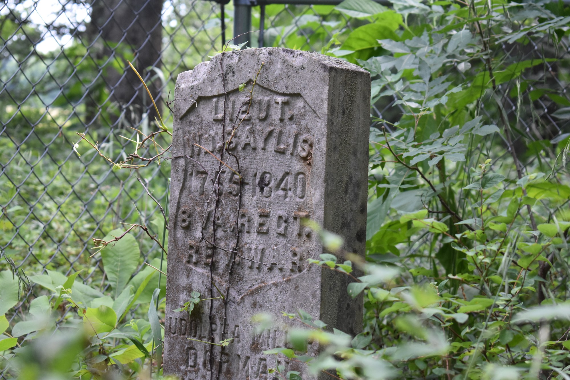 In 1916, his grave was restored and a marker placed over his original headstone by the Daughters of the American Revolution. Since that time, periodic attempts to clean off the vines growing about or cut the saplings around his grave have occurred. While I was photographing the tombstone, I even took out my pocket knife and cleared some of the growth back. But, largely the grave site is forgotten. It is not in a very accessible place and is rarely frequented except by a few people who know where it is. I’m not sure if that is good or bad. Perhaps, in the long run, a little cleaning and restoration of a barrier is more profitable to its preservation than having an immediate access to it that is unguarded or watched. I am personally torn in that regard because I believe history should be available to any seeker; yet I also know not all seekers are benign. Unfortunately, some people just do not respect the sanctity of some things.